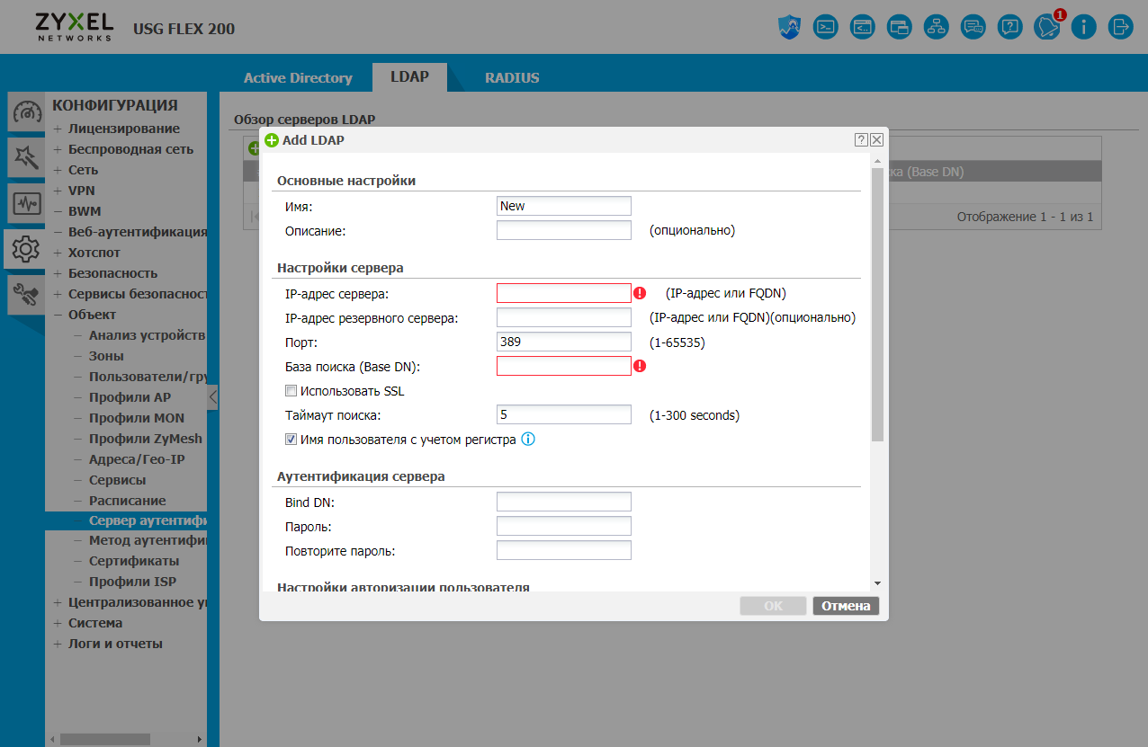 Отдельно отметим поддержку внешних сервисов аутентификации пользователей — Windows AD, LDAP и RADIUS.