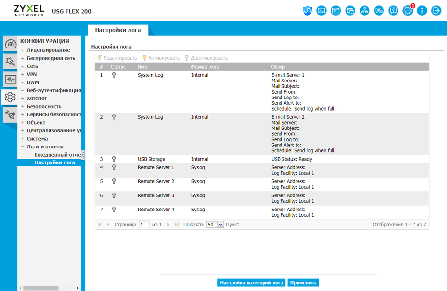 На последних страницах раздела можно настроить регулярную отправку статистики по электронной почте, а также варианты хранения и отправки журналов на внешние сервисы (почта, syslog).
