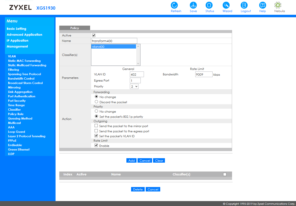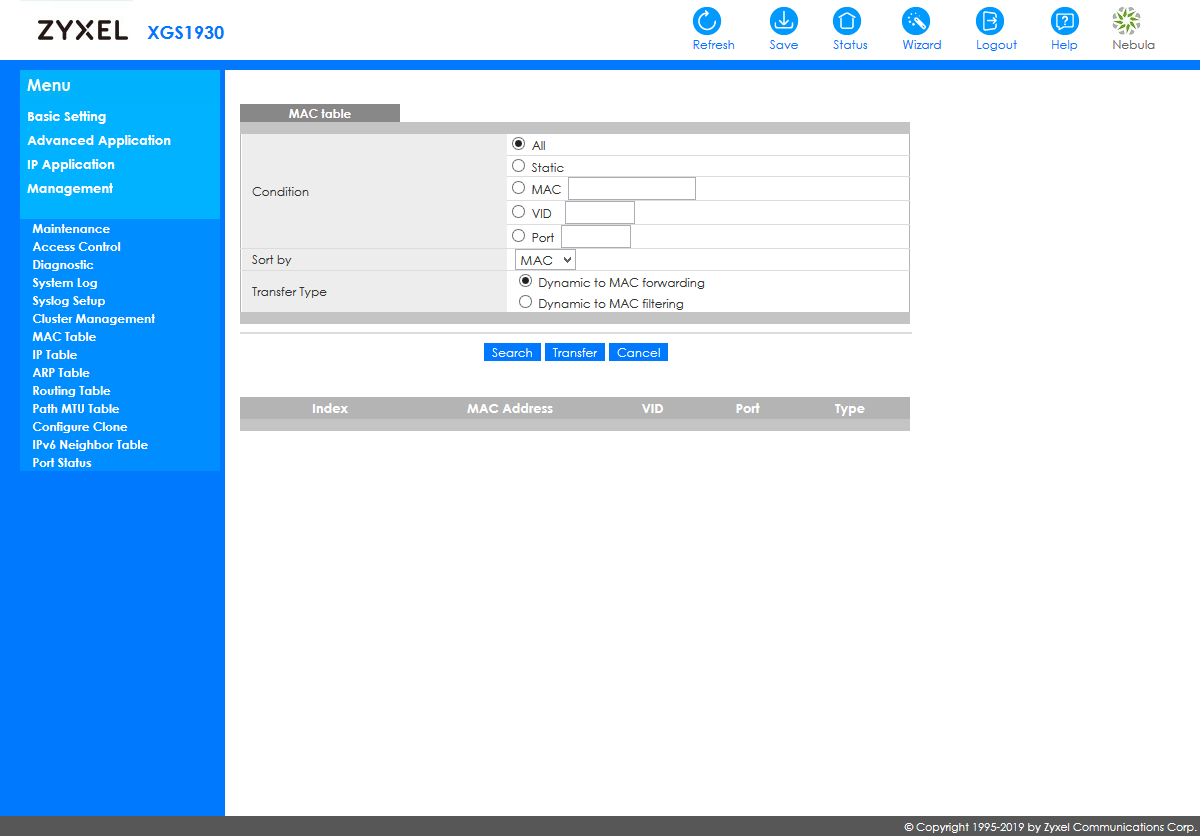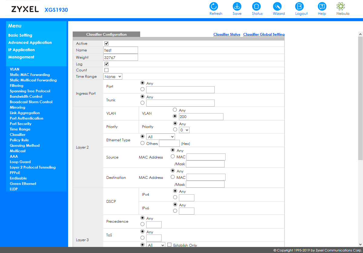 При интеграции в сторонние системы мониторинга будет пригодится поддержка устройством протокола SNMP (включая v1, v2c и v3, распространенные MIB и расширенный MIB Zyxel). Кроме того, здесь реализован RMON и отправка событий на внешние сервера Syslog.