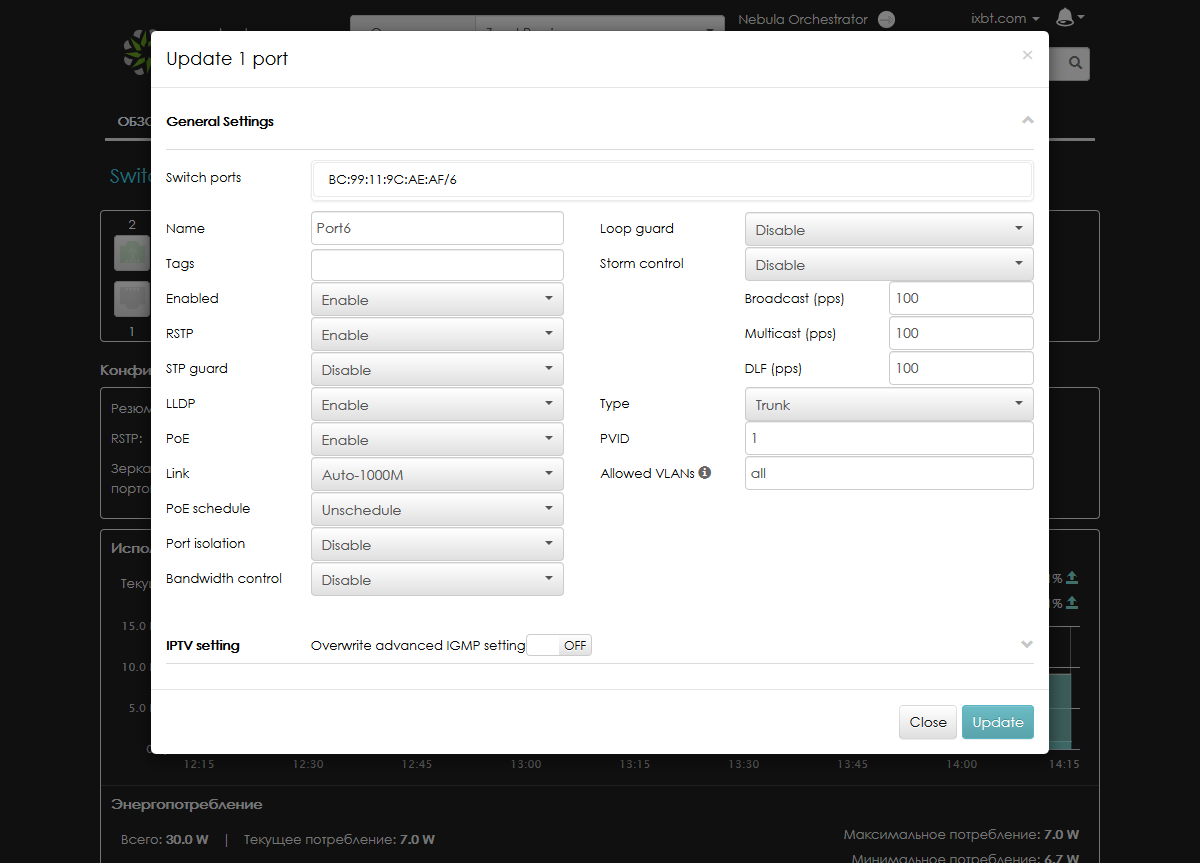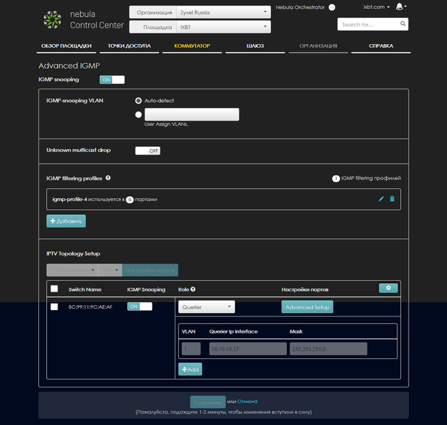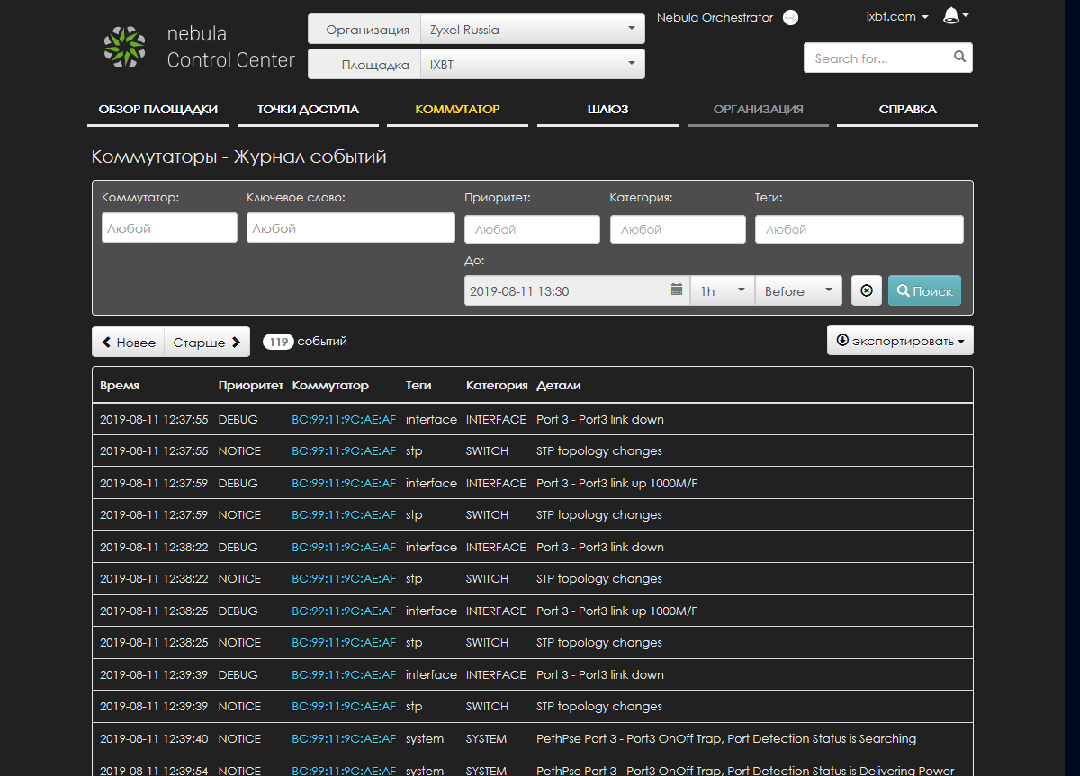 Набор предлагаемых в прошивке функций вполне стандартен для данного сегмента и позволяет решать множество задач, включая управление трафиком и средства защиты сети. Продукт может быть использован как в SMB, так и в достаточно крупных сетях, если не требуется интеграции в общие системы управления сетевыми ресурсами. Реализация веб-интерфейса для доступа к настройкам несколько огорчила своим устаревшим дизайном и немного запутанной организацией. Альтернативный вариант работы через облако Nebula выглядит заметно современнее и удобнее. Если же сравнивать в целом сценарии локального управления и контроля через облако, то каждый из них имеет свои плюсы и минусы. Локальный веб-интерфейс предоставляет доступ ко всем внутренним настройкам коммутатора, однако для работы с ним администратору необходимо находиться в той же локальной сети или использовать варианты удаленного доступа — например, VPN или проброс портов. Для облака Nebula достаточно иметь доступ в интернет через браузер (и, конечно, подключение коммутатора к облаку), но возможностей по тонкой настройке в данном случае будет меньше. А вот исторические данные о работе лучше представлены в облаке. Жаль, что не удалось обеспечить близкий набор функций в этих двух вариантах управления.