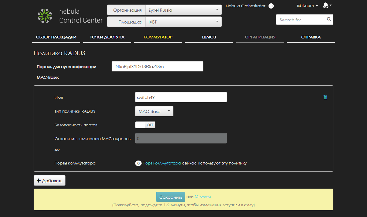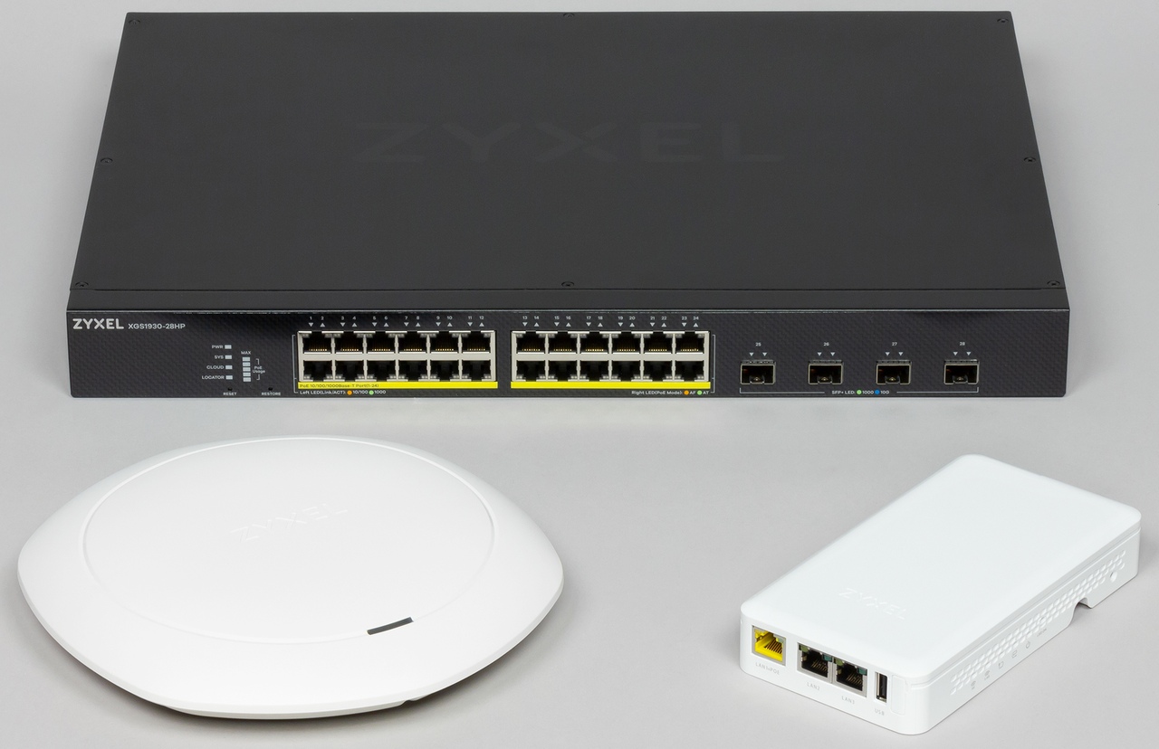 Поскольку, как мы писали выше, коммутатор сам по себе тестировать не очень интересно, мы добавили в сеть пару точек доступа, как один из наиболее распространенных вариантов использования коммутаторов с PoE. Да и управлять всем этим через облако Nebula будет интереснее.