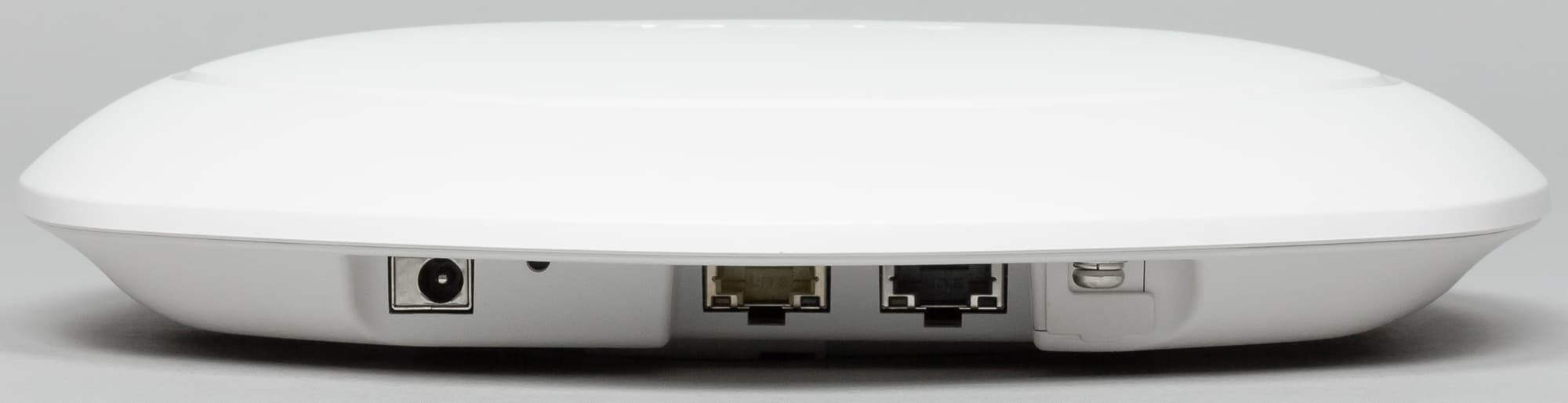 Модель предназначена для использования внутри помещений и не имеет дополнительной защиты корпуса. Габаритные размеры составляют около 23 см в диаметре и примерно 4 см в высоту. Основная часть корпуса, которая крепится к потолку и содержит всю электронику, выполнена из металла и окрашена снаружи белой матовой краской. Вторая половина для обеспечения прохождения радиоволн изготовлена из пластика. Вес точки доступа — около 750 г. На внешней стороне есть один многоцветный индикатор и малозаметный логотип производителя.