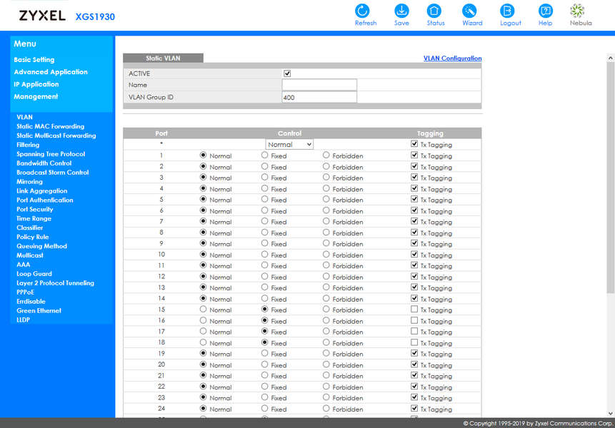 Одной из часто используемых функций умных коммутаторов является сегментирование локальной сети с применением технологий VLAN. Рассматриваемая модель поддерживает создание статических виртуальных сетей, а также умеет динамически обмениваться информацией по протоколу GVRP с другими коммутаторами в локальной сети. Настройки немного запутаны, но разобраться можно.