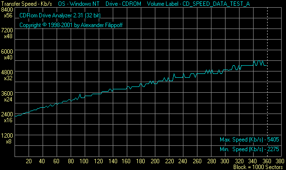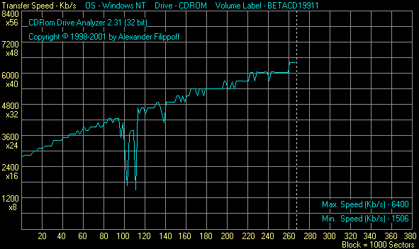 Роковые числаПривод был также проверен на способность прочитать файл, в котором данные содержат сигнатуру, превращающуюся в последовательность данных, повторяющую Sync Header. Эта проблема была подробно рассмотрена в этой статье. Привод не смог прочитать тестовые файлы. Прямое копирование данных с 832 MB (92 min), 5000 файлов CD-R на жесткий диск