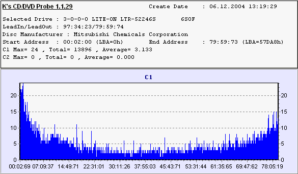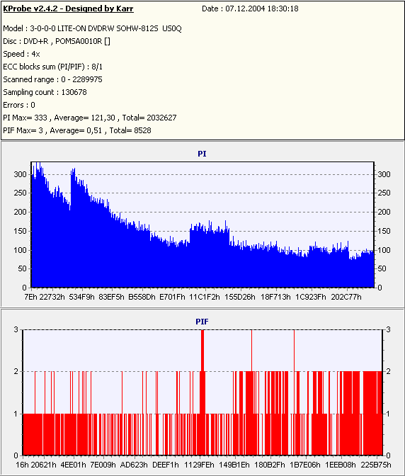 Результаты чтения записаных дисков, на приводе Lite-On c помощью утилиты KProbe