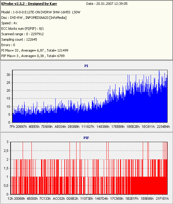 Результаты чтения записанных дисков, на приводе Lite-On c помощью утилиты KProbe
