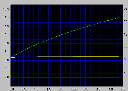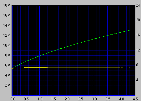 Приведенный скриншот представляет собой наиболее типичную картину записи различных носителей. Для записи на максимальной скорости используется технология CAV, а при записи на более низкой скорости используется технология P-CAV. Традиционно проводилось тестирование привода на способность корректно запиcывать цианиновые диски на минимальной скорости, такой режим чаще всего применяют меломаны, чтобы добиться максимально качественного звучания.