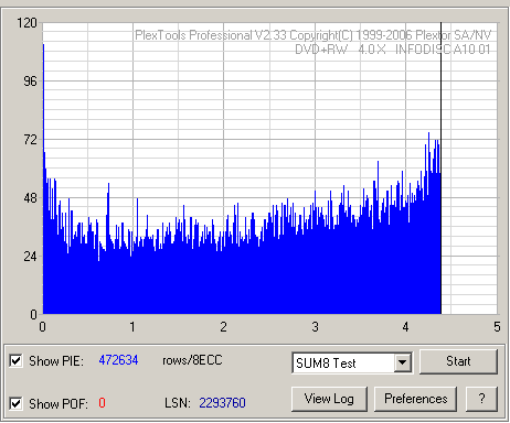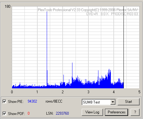 Роковые числаПривод был также проверен на способность прочитать файл, в котором данные содержат сигнатуру, превращающуюся в последовательность данных, повторяющую Sync Header. Эта проблема была подробно рассмотрена в этой статье. Привод не смог прочитать тестовые файлы. Прямое копирование данных с 832 MB (92 min), 5000 файлов CD-R на жесткий диск