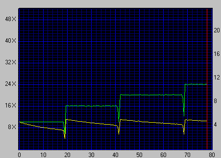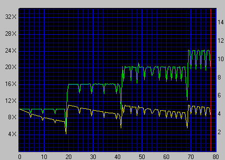 Чтобы дополнить картину, я решил добавить сюда результаты записи High speed CD-RW дисков. Verbatim 24XDisc Type = ULTRA SPEED CD-RW 24X Nominal = 656.40MB (74m 43s 00f/LBA: 336075) Manufacturer = Mitsubishi Chemicals Corporation