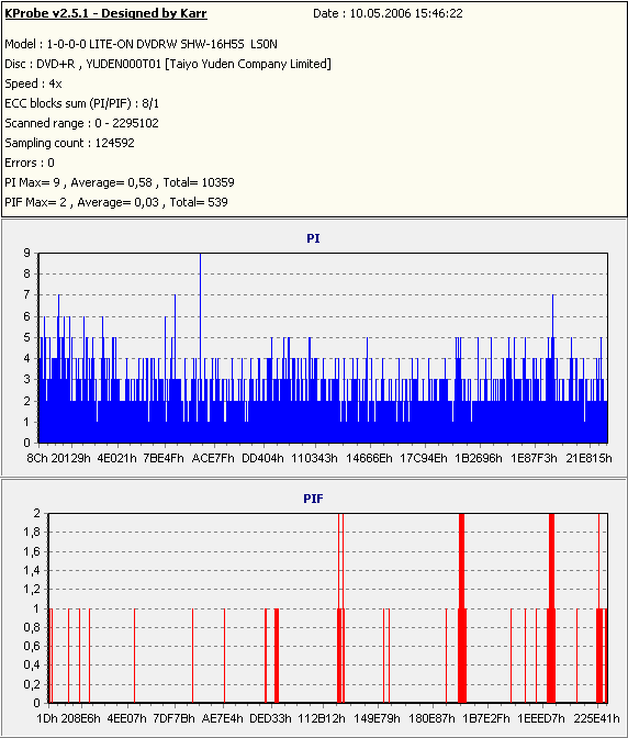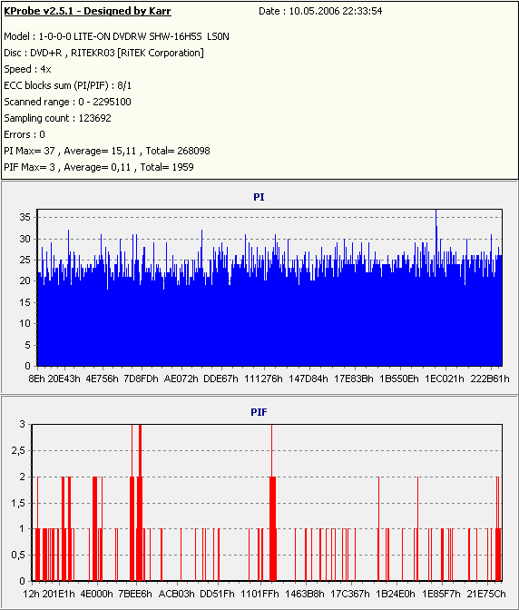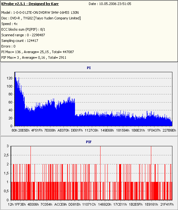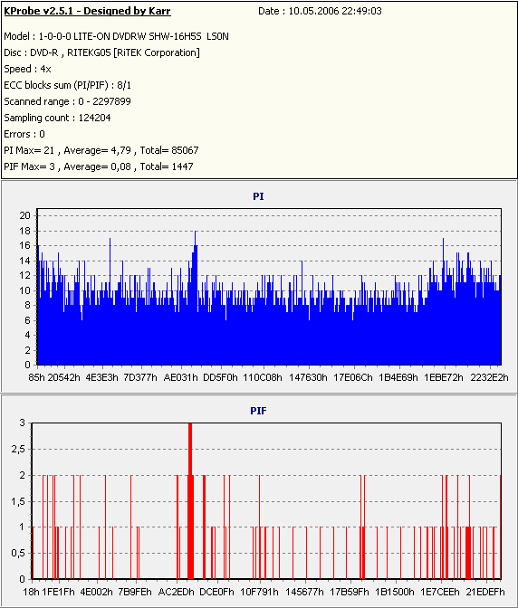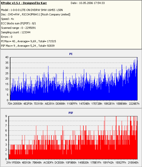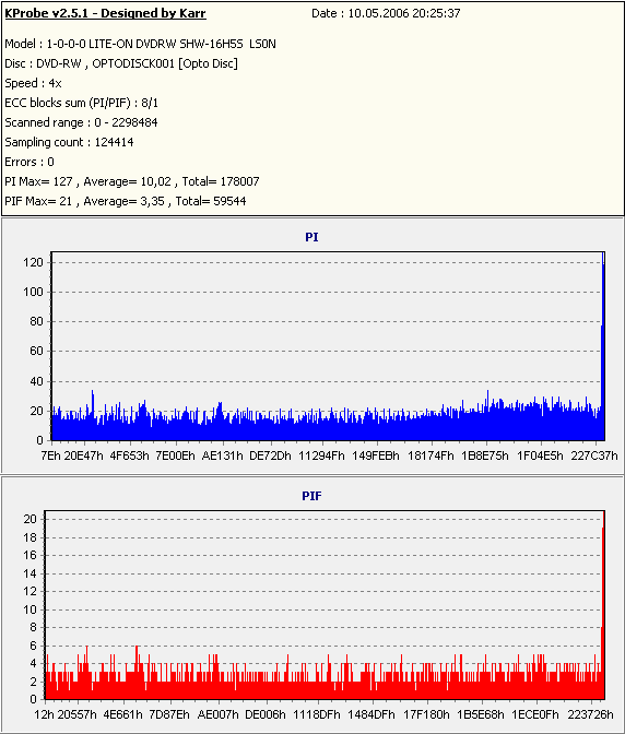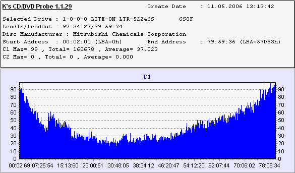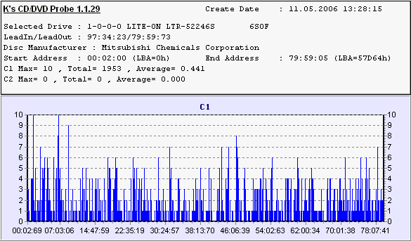 Результаты чтения записаных дисков, на приводе Lite-On c помощью утилиты KProbe