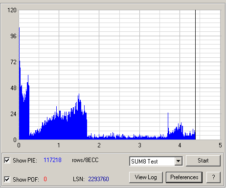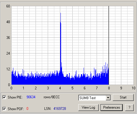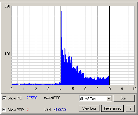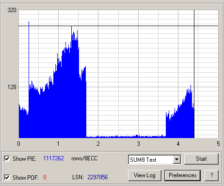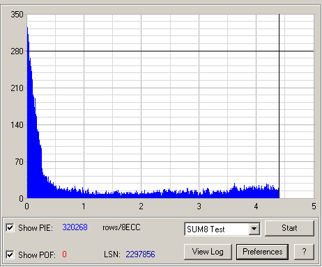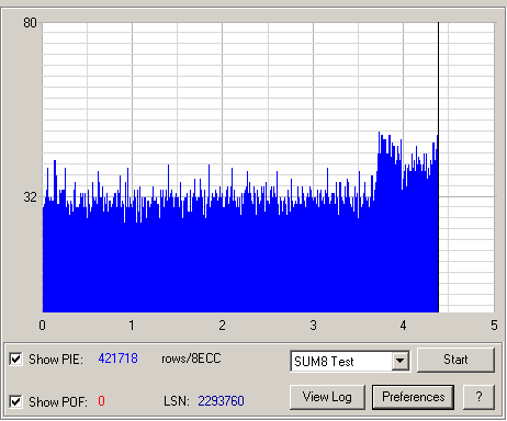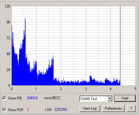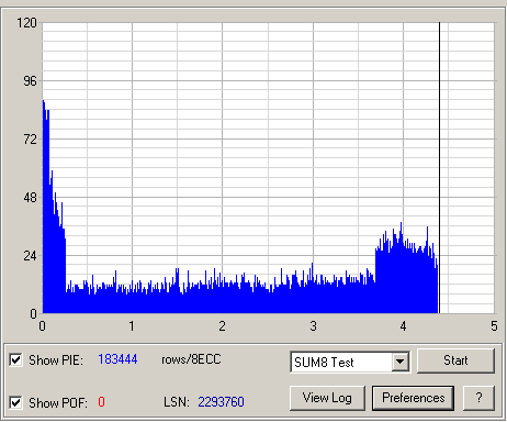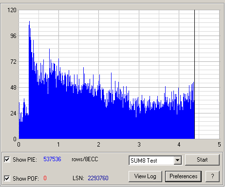 Роковые числаПривод был также проверен на способность прочитать файл, в котором данные содержат сигнатуру, превращающуюся в последовательность данных, повторяющую Sync Header. Эта проблема была подробно рассмотрена в этой статье. Привод не смог прочитать тестовые файлы. Прямое копирование данных с 832 MB(92 min) CD-R на жесткий диск