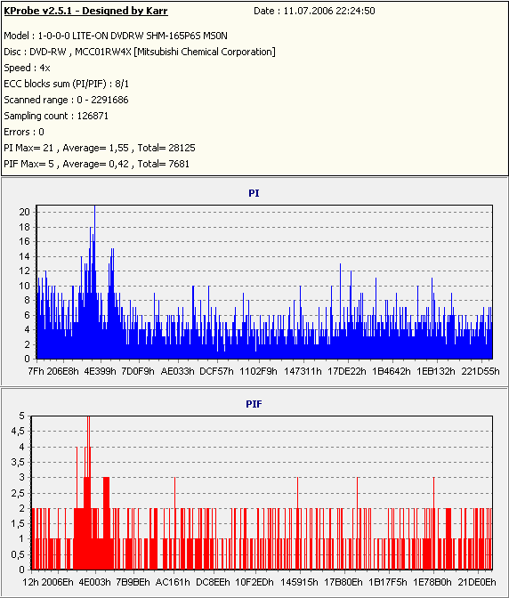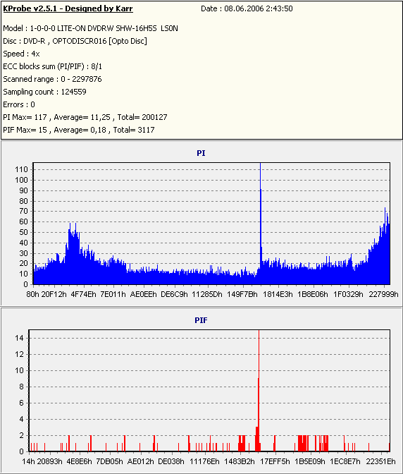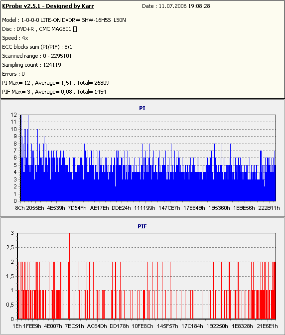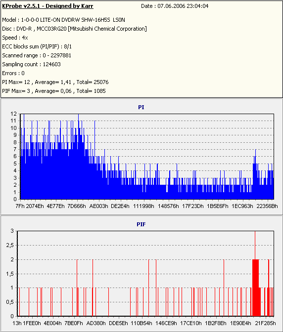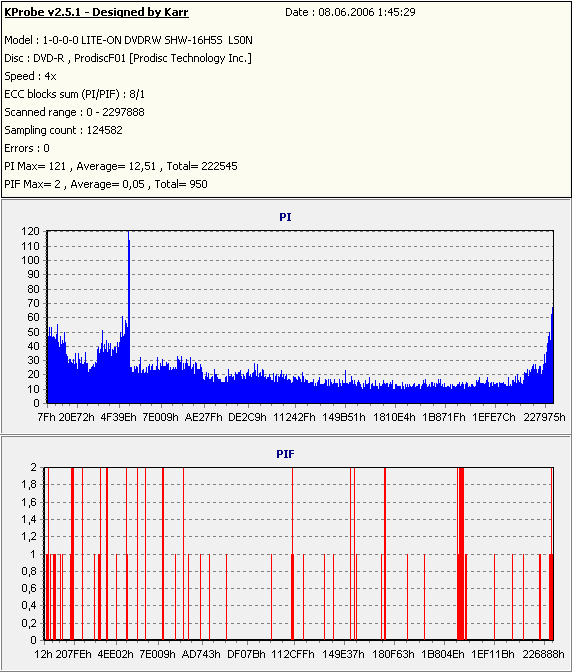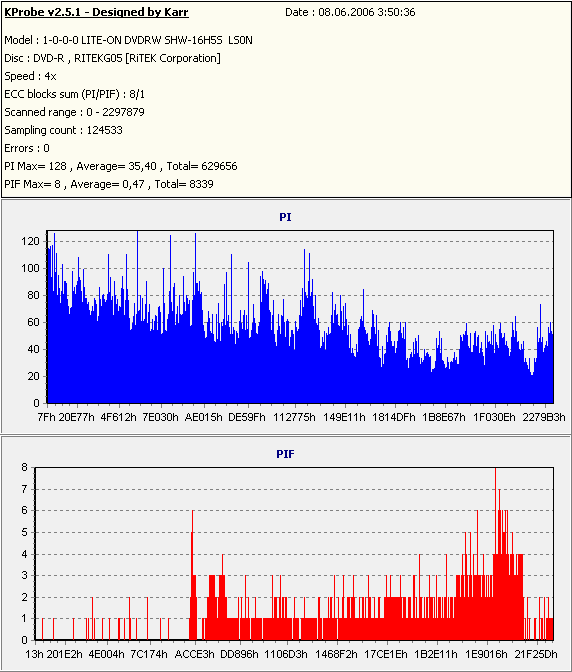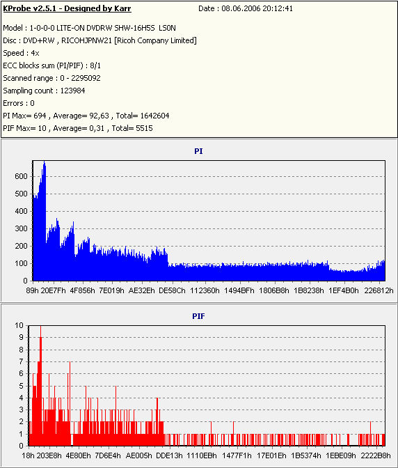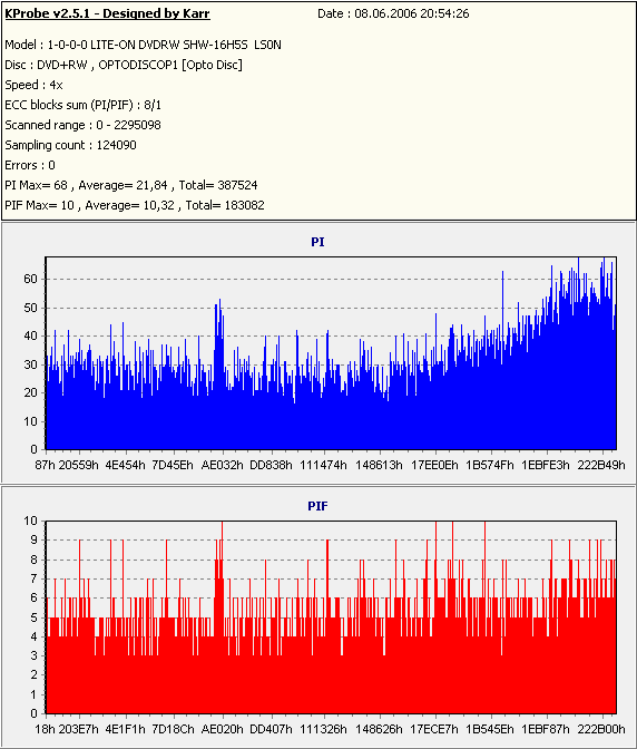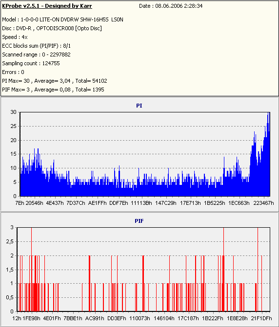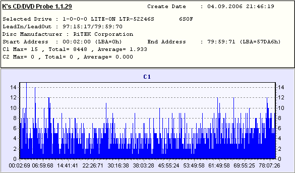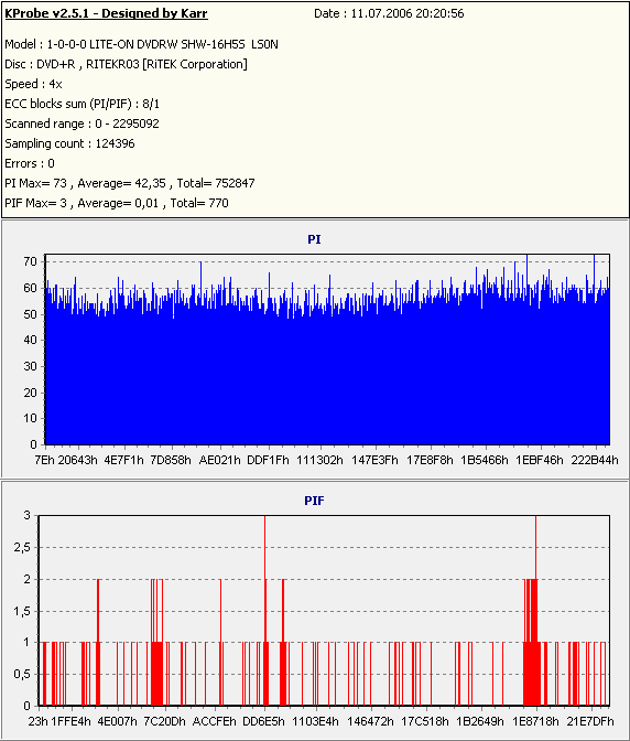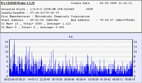 Результаты чтения записанных дисков, на приводе Lite-On c помощью утилиты KProbe