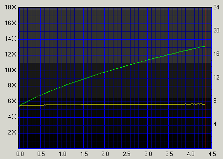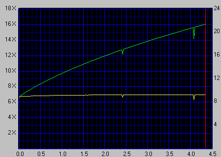 Как показали тесты, качество записи, при записи 16х скоростных дисков на скорости 18х, практически не изменилось.