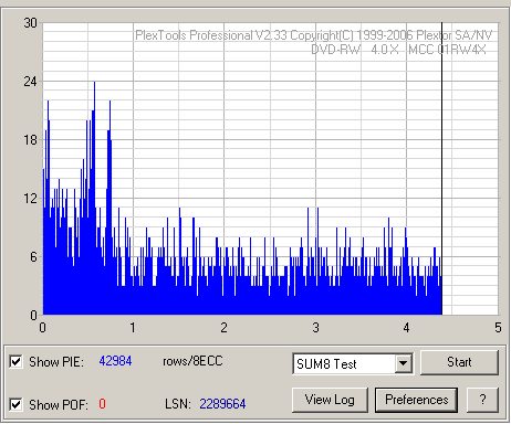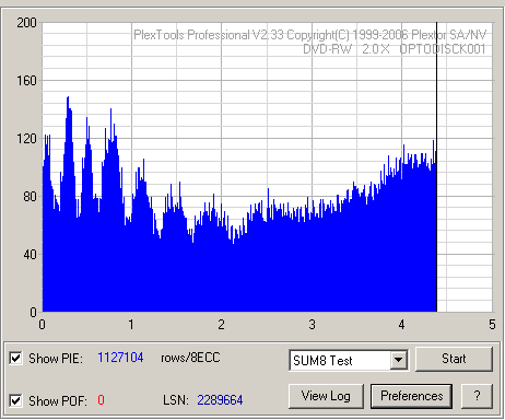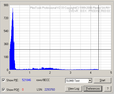 Роковые числаПривод был также проверен на способность прочитать файл, в котором данные содержат сигнатуру, превращающуюся в последовательность данных, повторяющую Sync Header. Эта проблема была подробно рассмотрена в этой статье. Привод не смог прочитать тестовые файлы. Прямое копирование данных с 832 MB (92 min), 5000 файлов CD-R на жесткий диск