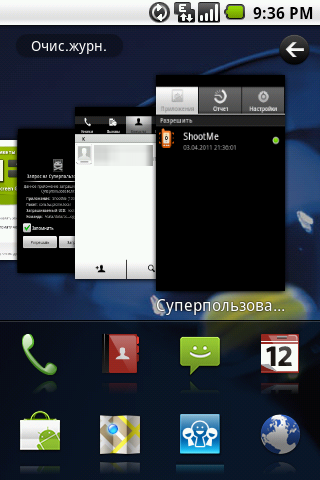 В левой части окна находится панель, потянув за которую можно открыть окно с журналом запущенных приложений, причем они представлены в виде набора миниатюрных скриншотов. Вращением этого списка можно активировать приложение, либо щелкнуть в углу окна и очистить список. К этой функции претензий нет.