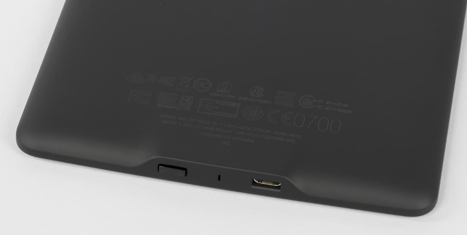Выделяется на фронтальной панели только глянцевый логотип Kindle, да и то лишь под определенным углом. В качестве основного материала применен матовый софт-тач пластик, обеспечивающий такие же тактильные ощущения, но при этом собирающий меньше отпечатков.
