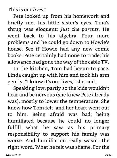 Вместо страниц Amazon разделяет книги на места, нумерация которых привязана к содержанию книги, а не к ее отображению на конкретном устройстве. Такая навигация позволяет делиться отрывками и другим контентом, связанным с произведениями, через социальный сервис Goodread. Общее количество мест в книге не отображается, прогресс выражается в процентах в соседнем углу. Вместо номера текущего места в настройках можно включить отображение времени чтения до конца главы или книги.