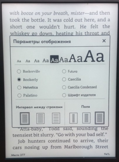 Кроме того, создатели поработали над адаптацией книг к большим шрифтам, расстановкой пробелов и, что самое главное, добавили возможность переноса слов. Прогресс по сравнению с Paperwhite 2 (а также самым дорогим Kindle Voyage) можно оценить на Youtube.