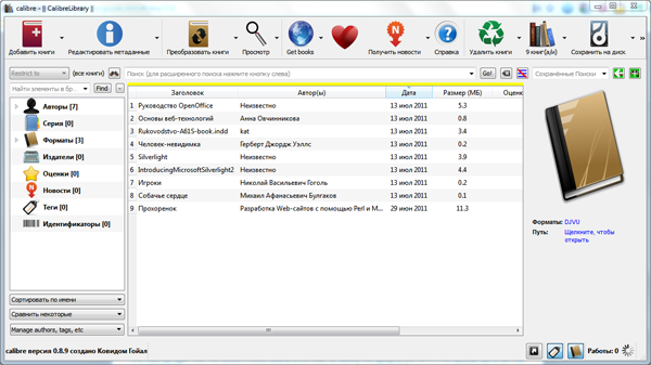 Отсутствие поддержки популярных форматов в Kindle может оказаться некритичной проблемой, если вам не лень переконвертировать необходимые файлы. Существует множество вариантов конвертации книг из разных форматов в те, которые поддерживает Kindle: среди них есть продукты, которые конвертируют только один формат в другой, а есть целые комбайны, позволяющие помимо собственно конвертации еще и служить хранилищем и каталогизатором ваших электронных файлов-книг. Речь в данном случае идет о бесплатной программе под названием Calibre. Она конвертирует множество форматов, в том числе способна взаимодействовать с Kindle — определяет эту книгу, при отсылке на нее файлов автоматически преобразует их в MOBI. Помимо передачи по кабелю, Calibre способна отсылать файлы на электронный адрес книги — что гораздо удобнее для беспроводной передачи файлов на устройство, чем вручную прикреплять к письму вложения. Интересной возможностью является способность скачивания RSS-лент (в том числе по расписанию) и представление их в удобном для чтения виде.