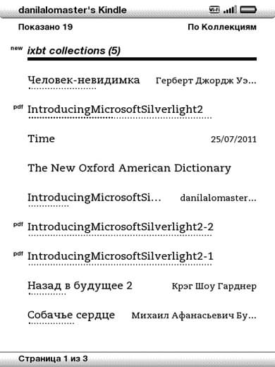 Разработчики попытались нивелировать этот минус и сделали возможность создания так называемых коллекций — создаете с помощью книги эту самую коллекцию, а затем галочками отмечаете книги, которые необходимо в нее добавить. Эти книги исчезают из общего списка и попадают в эту коллекцию. Эдакий своеобразный аналог папок, но только неудобный — и своим принципом, и тем, что добавление книг в коллекции осуществляется только на самом устройстве, и процесс это не самый быстрый и желанный. Но здесь стоит сделать одно замечание: удобно организован доступ к последним прочитанным книгам: они всегда висят в «топе», по мере открытия они всегда перемещаются вверх, подобно, например, темам в форумах.