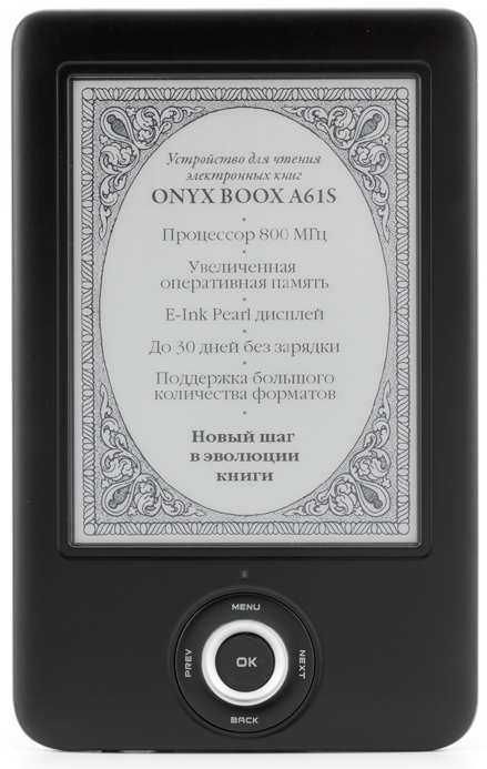 Мы уже писали про электронную книгу Onyx A60. От новинки с индексом A61S она отличается более старым типом дисплея (Vizplex), наличием сенсорного экрана (в A61S экран не сенсорный), наличием Wi-Fi-модуля (и, соответственно, браузера). Поэтому при рассмотрении особенностей новой версии книги — Onyx A61S — мы будем останавливаться в первую очередь на отличиях и сходствах этой книги с Amazon Kindle, а для того чтобы лучше понимать, как устроена A61S, рекомендуем прочитать обзор Onyx Boox 60.