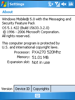 - Операционная система Windows Mobile 5.0 с пакетом обновлений AKU 3.2