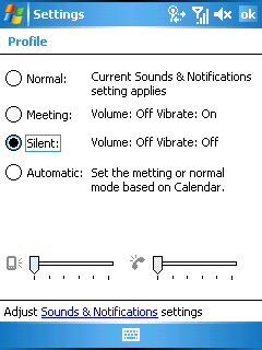 Чуть ниже находится индикатор профиля работы устройства. В меню настроек есть одноименная утилита Profile, с которой связан этот индикатор. Внутри утилиты на выбор доступны несколько заранее подготовленных звуковых профилей работы коммуникатора.