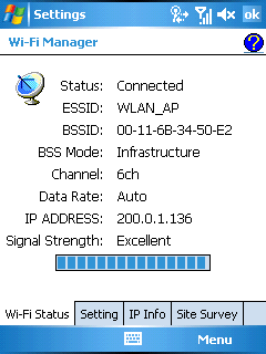 Как уже было сказано, управление всеми беспроводными модулями связи осуществляется с помощью приложения Wireless Manager. Индикаторы каждого из беспроводных интерфейсов вынесены на экран Today. Подключение к сетям Wi-Fi занимает минимум времени и не вызывает проблем. В коммуникатор встроен модуль версии IEEE 802.11b + g.