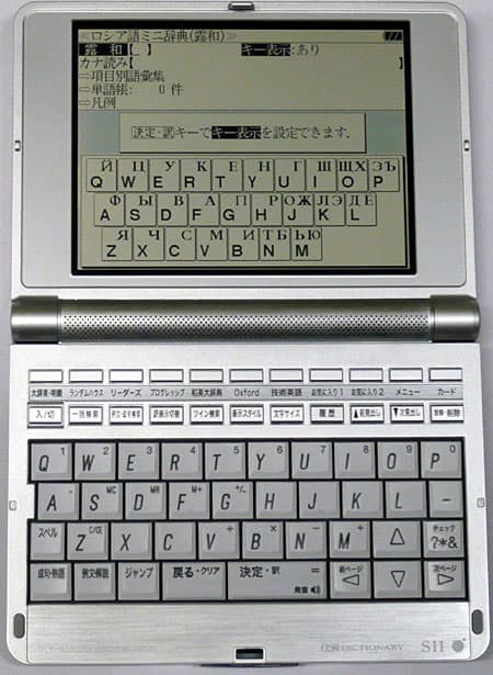 Клавиатура устройств SEIKO не имеет русской маркировки. Инженеры фирмы нашли оригинальное решение: использовать изображение клавиатуры на экране с русскими и английскими буквами для помощи ввода. Клавиатура переключается на русскую раскладку автоматически.