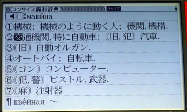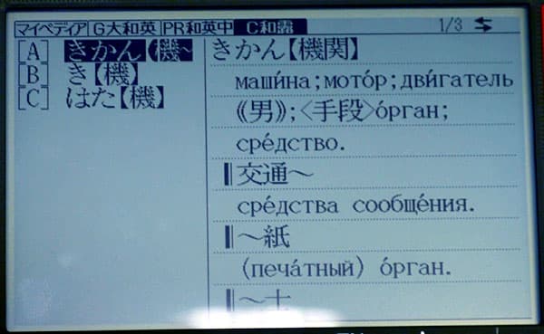Начинка устройств по японско-русским и англо-русским направлениям перевода, а также интеллектуальные функции поиска, встроенные в них, остались без изменений. Увеличилось число японско-английских словарей, которые могут пригодиться специалисту по японскому языку, студенту, изучающему язык, или носителю японского языка. Из «физических изменений» выделим следующие: электронный словарь «сбросил» вес (15 г.), устройство стало «стройнее» (тоньше на 2,2 мм). Размеры экрана увеличились для размещения кнопок управления стилусом. Обратим внимание, что устройство может быть применено для чтения электронных книг, загруженных на microSD-карту. Правда, русские шрифты не поддерживаются: тексты могут быть только на английском, японском, китайском или корейском языке. В таблице 1 мы упомянули только те словари, которые могут пригодиться рядовому русскоязычному пользователю, который не является специалистом по японскому языку.