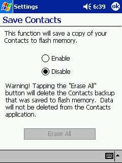 В комплект поставки входит утилита, позволяющая автоматически копировать контакты во флэш-память, что предотвращает проблемы, возникающие при полной разрядке аккумулятора; а также утилита CF Backup/Restore, предназначенная для резервного копирования практически всей нужной информации (впрочем, на экране все видно).