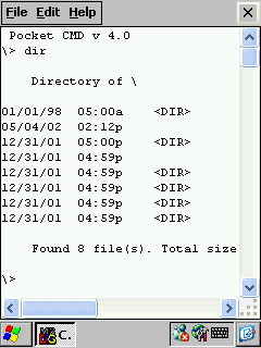 Еще одно приложение, слегка меня удивившее, называется Command Prompt — карманный эмулятор DOS. Приложение выполняет основные DOS-овские команды и запускает программы внутри всех доступных директорий. Единственное возможное объяснение наличия этого монстра на DOT 320 — потребность разработчиков в подобном инструменте.