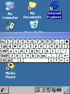 Внизу находится панель со служебными иконочками справа и кнопкой Старт слева. В правом углу всегда высвечивается пиктограмма клавиатуры, первое нажатие на которую вызывает клавиатуру, а повторное — убирает. Альтернативой стандартной клавиатуре является программа Transcriber, присутствующая в качестве отдельно запускающегося приложения.