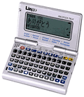 Он самый мощный из всех присутствующих на мировом рынке: в него встроено 46 книг и он оснащен SD-разъемом. Из книг, нужных для работы с английскими текстами, выделим следующие: упоминавшийся выше Oxford Advanced Learner's Dictionary, Oxford University Press, 2000 (80000 слов), Энциклопедия деловых писем — Business letter expressions (4000 примеров) и словарь электронных писем — A manual for writing effective letters (200 примеров). Заметим, что Oxford Collocations Dictionary for Students of English отсутствует в данном устройстве. Здесь нет также тезауруса. Недостаток последнего может быть компенсирован SD-картой, о которой речь шла выше. Габариты и весовые параметры такие же, как для модели Sharp PW-A8700.