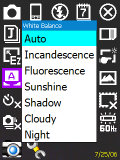 Запись видео ведется со звуком в формате 3gp и разрешением до 320х240. Ограничений на длину ролика нет, кроме доступного объема памяти. Настройки полностью повторяют аналогичные для режима фотокамеры: баланс белого, эффекты, разрешение. Пример видеозаписи.