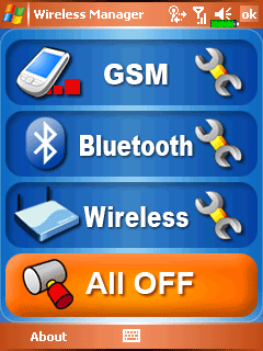 Правее и ниже на экране Today расположены три ярлыка важных настроек коммуникатора. Первый из них — переключатель профилей устройства, например «в офисе», «на улице», «тихий режим» и т.п. Каждый из режимов можно редактировать по собственному усмотрению. Второй ярлык — утилита, отвечающая за так называемый «черный список» абонентов, звонки от которых нежелательны. В случае такого звонка коммуникатор сам сбросит вызов. Третий ярлык — Wireless Manager — центр управления всеми беспроводными интерфейсами коммуникатора.