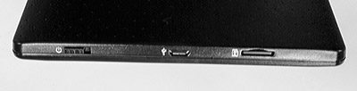 Наверху разместилось то немногое, без чего уж никак нельзя: кнопка включения/выключения/блокировки (она не нажимается, а сдвигается вбок — довольно остроумный способ избежать случайных нажатий), разъем Micro-USB и разъем для карты microSD.