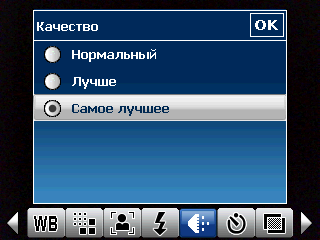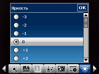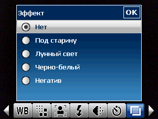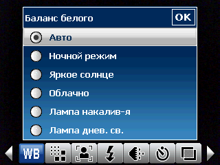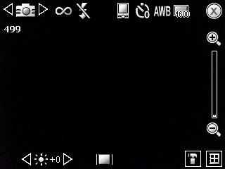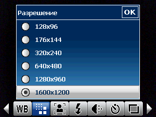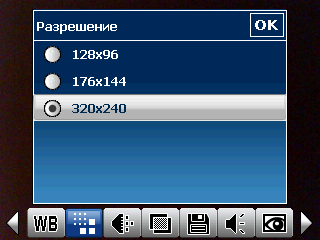 Часто требуемые значки и индикаторы режимов работы камеры выведены на основной экран программы управления. Небольшой размер элементов управления не позволяет контролировать работу камеры с помощью пальца, приходится напряженно прицеливаться. В дополнительном меню настраивается баланс белого (ночной режим, яркое солнце, лампа накаливания и т.д.), разрешение, переключение автофокуса в макрорежим, яркость, режимы художественной и быстрой съемки, контраст и экспозиция.