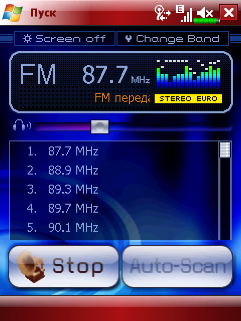 Несомненный интерес вызывает наличие в коммуникаторе Х650 FM передатчика. Работа с ним не отличается сложностью: программа автоматически находит свободные частотные диапазоны и по выбору передает в одном из них аудиопоток операционной системы. Мощность радиосигнала низкая. Опытным путем установлено, субъективно приемлемым по качеству радиосигнал остается на расстоянии 20 см, затем он заглушается помехами от других радиостанции или шумами эфира. Для работы радиопередатчика необходимо подключить гарнитуру, которая идет в комплекте с устройством.