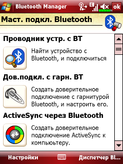 Стек Bluetooth версии 2 с поддержкой EDR реализован средствами операционной системы от Microsoft. Стек поддерживает все необходимые профили работы, в том числе синхронизацию, подключение гарнитуры и обмен информации. Настройка подключений организована в виде удобных мастеров, реализованных силами программистов E-Ten.