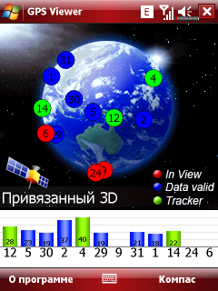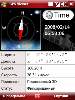 Большинство систем спутниковой навигации в настоящий момент используют чип SiRFStar III. Для его работы не требуется внешняя антенна, поддерживается двенадцать источников сигнала. В подавляющем числе коммуникаторов с возможностью спутниковой навигации установлен этот же чип. Не стали исключением и поступившие на тестирование компьютеры. Холодный старт модуля занимает до 15 минут по времени, в зависимости от условий приема сигнала и скорости движения коммуникатора, в дальнейшем горячий старт запускает модуль за полминуты и меньше зависит от условий приёма. Встроенная утилита GPS Viewer показывает количество источников сигнала, мощность сигнала и простейшую информацию в виде скорости и координат. С помощью двух других утилит можно получить информацию о спутниках из интернета или отправить свои координаты в виде SMS сообщения.