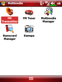 Все дополнительные утилиты в меню программ операционной системы разбиты по группам. Раздел Multimedia включает в себя ярлыки программ: Multimedia Manager — организация просмотра аудио, видео файлов и изображений в памяти коммуникатора, Namecard Manager — программа обработки информации с визитных карточек, FM Tuner и FM Transmitter — управление радиоприемником и радиопередатчиком соответственно.
