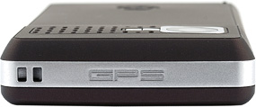 Верхний торец коммуникатора используется для демонстрации надписи GPS и крепления шнурка. На нижнем торце находятся разъем miniUSB, стилус, слот карт памяти microSD и микрофон.