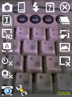 Камера позволяет делать фотоснимки с использованием подсветки от встроенной светодиодной вспышки или без нее, с разрешением 1280х960, 640х480, 320х240 или 176х144 точки, сохраняя их в формате BMP или JPG. Пользователь может выбрать режим определения баланса белого (авто, лампы накаливания, флюоресцентные лампы, солнечный свет, облачная погода, ночная съемка), воспользоваться таймерной или серийной съемкой.