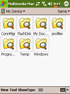 Multimedia Manager – альтернативный файловый броузер, «заточенный» под поиск и отображение мультимедиа-файлов. Его преимущество – в простом графическом интерфейсе, более удачном, чем у штатного File Explorer, а недостаток – в том, что одновременно он отображает только файлы одного вида – звук, изображения или видео: например, если в папке с графическими файлами вы выберете опцию Видео, то не увидите ничего.
