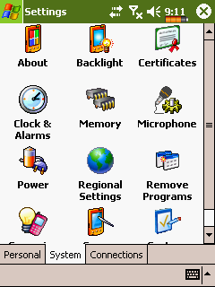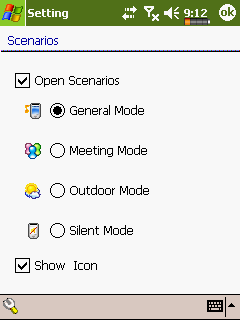 Настройки. Нетипичными для Pocket PC являются настройки чувствительности микрофона и профилей сигналов (здесь они именуются Scenarios).