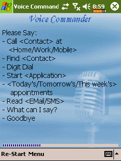 Voice Commander – утилита для голосового управления коммуникатором, позволяющая как набирать номер голосом (что в случае коммуникатора достаточно полезно, так как составляет альтернативу не всегда приемлемой сенсорной клавиатуры), а также присваивать абонентам голосовые метки. Есть также возможность вызова приложений по заранее запрограммированным голосовым командам – для большинства программ и функций метки предустановленны, но если их качество не устраивает, можно записать свои.