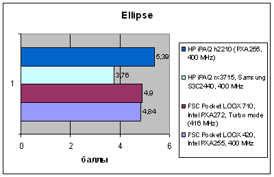 | VOBenchmark | HP iPAQ h2210 (PXA255, 400 MHz) | HP iPAQ rx3715, Samsung S3C2440, 400 MHz | FSC Pocket LOOX 710, Intel PXA272, Turbo mode (416 MHz) | FSC Pocket LOOX 420, Intel PXA255, 400 MHz |