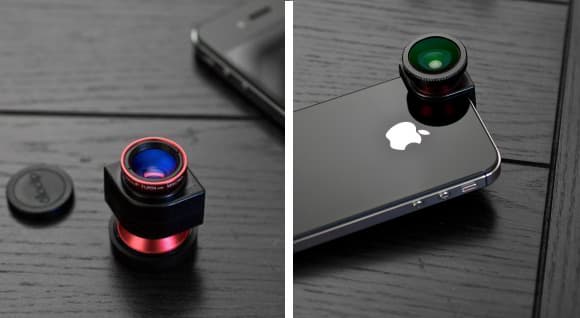 Куда более интересным дополнением для двух последних айфонов является насадка, позволяющая снимать фото и видео с эфффектом «рыбий глаз» либо же осуществлять макросъемку. Olloclip — так называется это совсем небольшое приспособление. В зависимости от того, какой стороной оно надето на смартфон, вы будете снимать широкоугольные снимки или же макро. В широкоугольном режиме камера будет способна запечатлеть все, что находится в диапазоне 180 градусов, а при макросъемке увеличение происходит в 10 раз. Устройство было проспонсировано заинтересованными в покупке людьми на известном проекте Kickstarter, который служит для нахождения спонсоров. Сейчас стоимость аксессуара составляет $70, а за $130 можно купить сразу два.