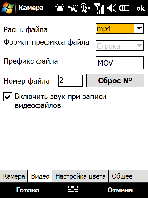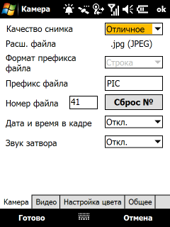 Интерфейс программы управления камерой удобен и понятен, основные инструменты управления вынесены на основной экран и представлены в виде небольших значков. Не забираясь в меню можно изменить режим съемки: фото обычное, фото для MMS, фото с присоединенными координатами, видео обычное, видео для MMS, фотографии с художественной подложкой. А также: выбрать разрешение фотографии или видеоролика, включить режим макросъемки, назначить таймер и открыть галерею снимков.